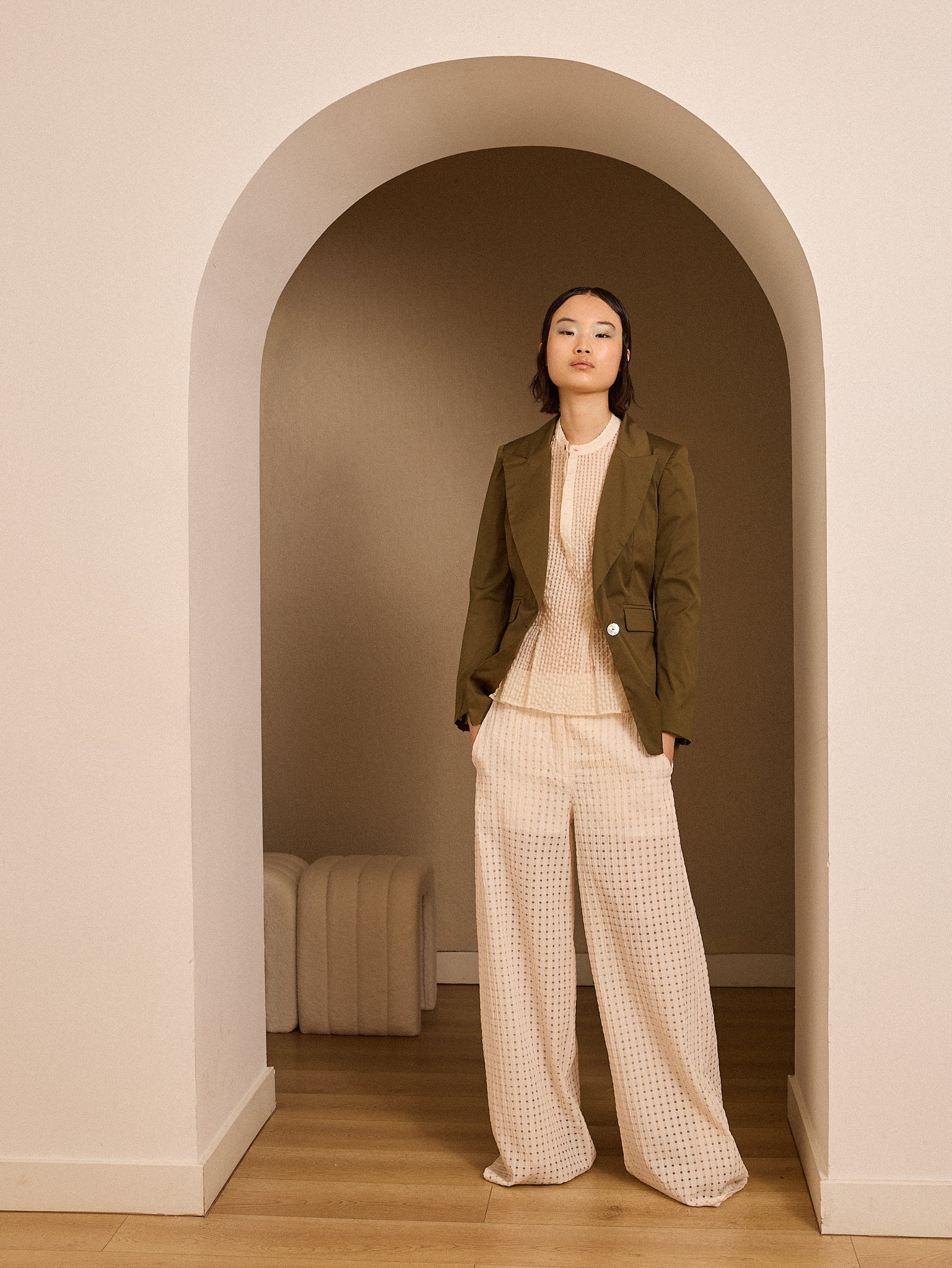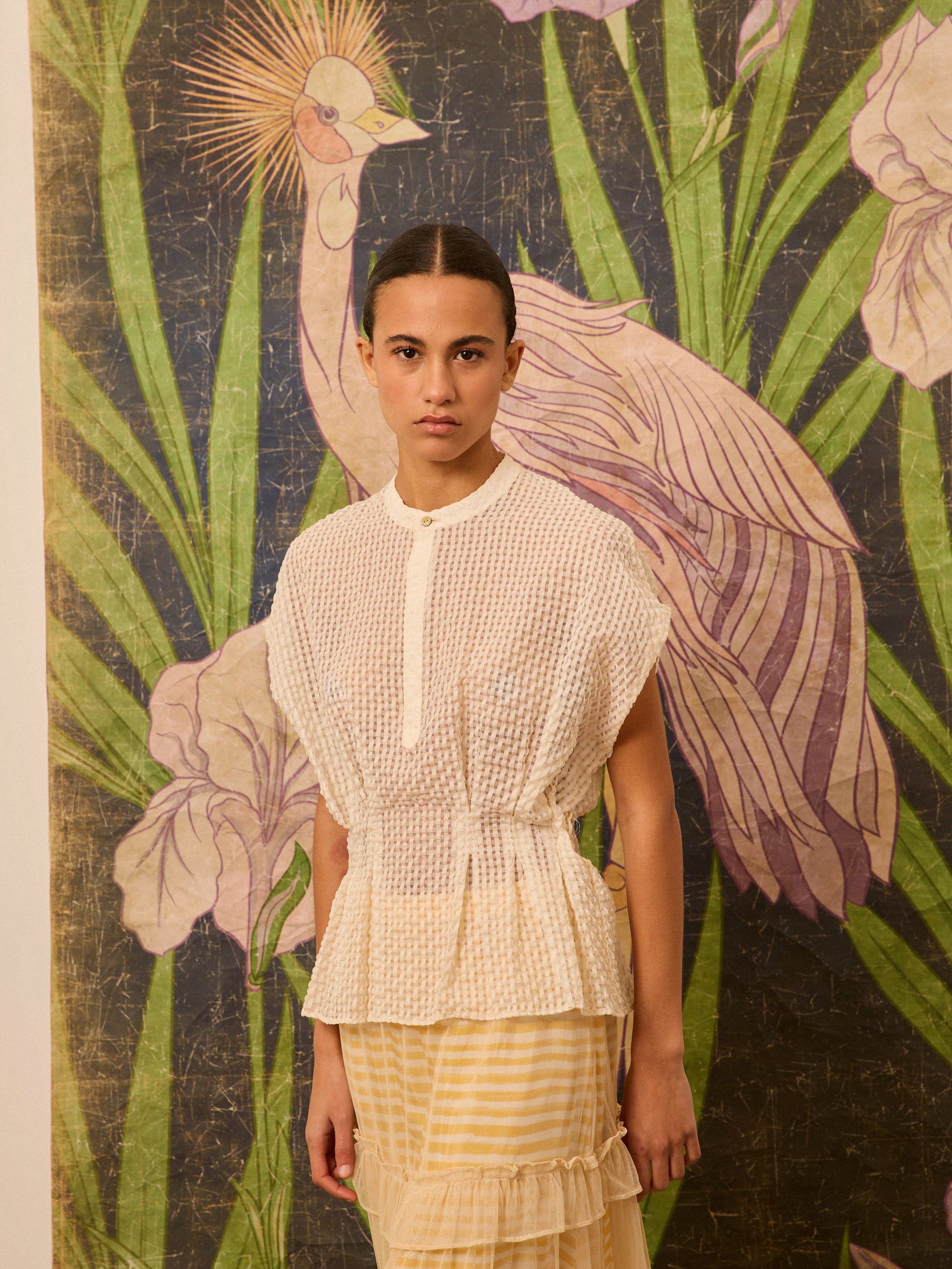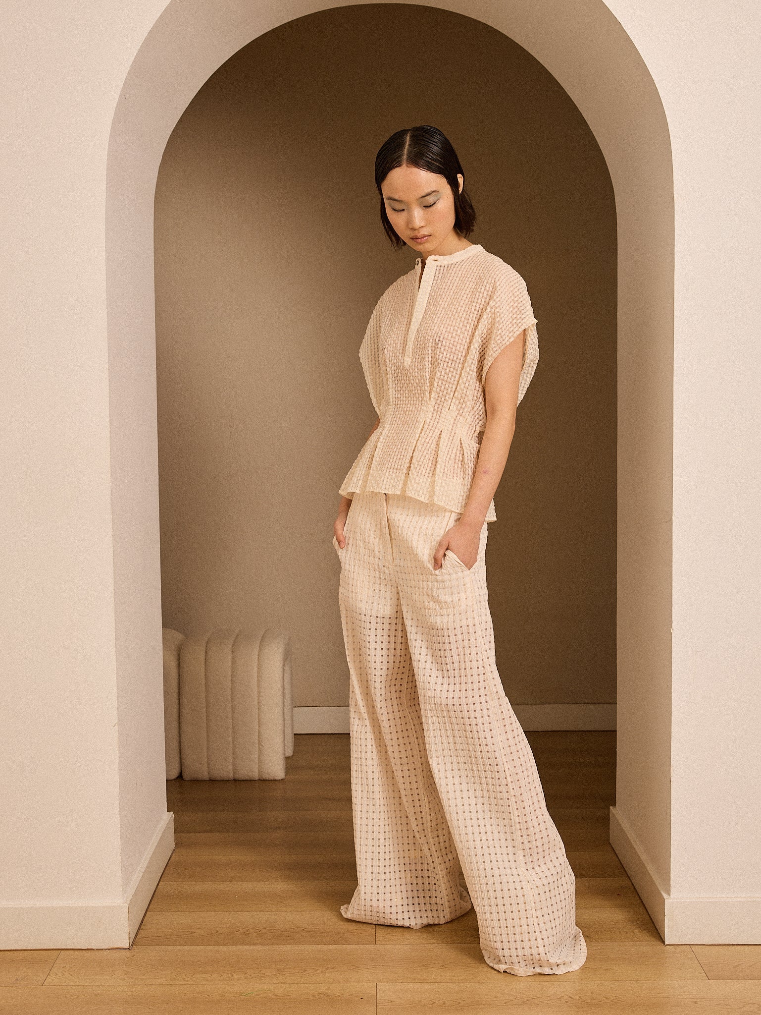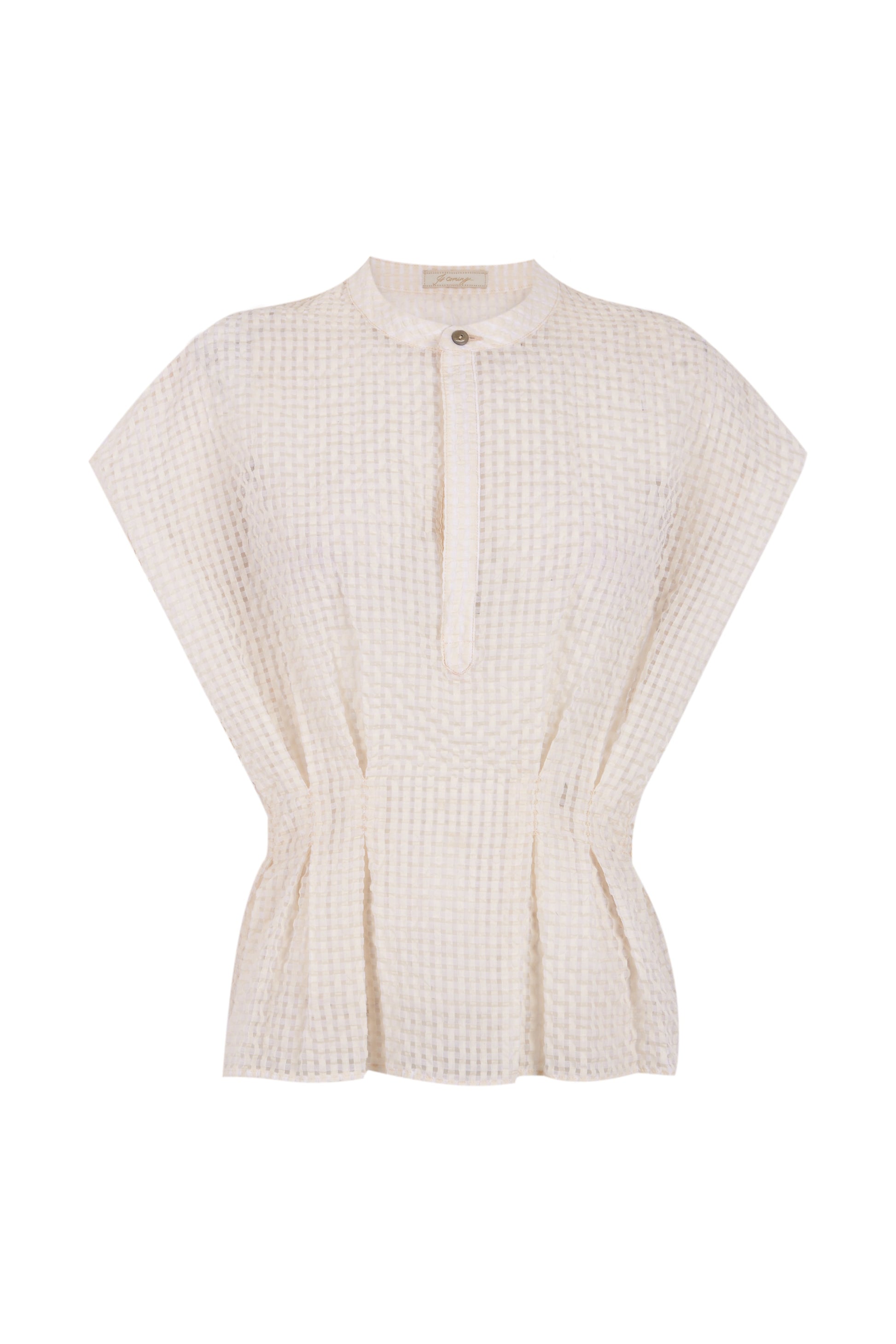 Blusa de manga corta en tejido calado color blanco. Hecho en Portugal