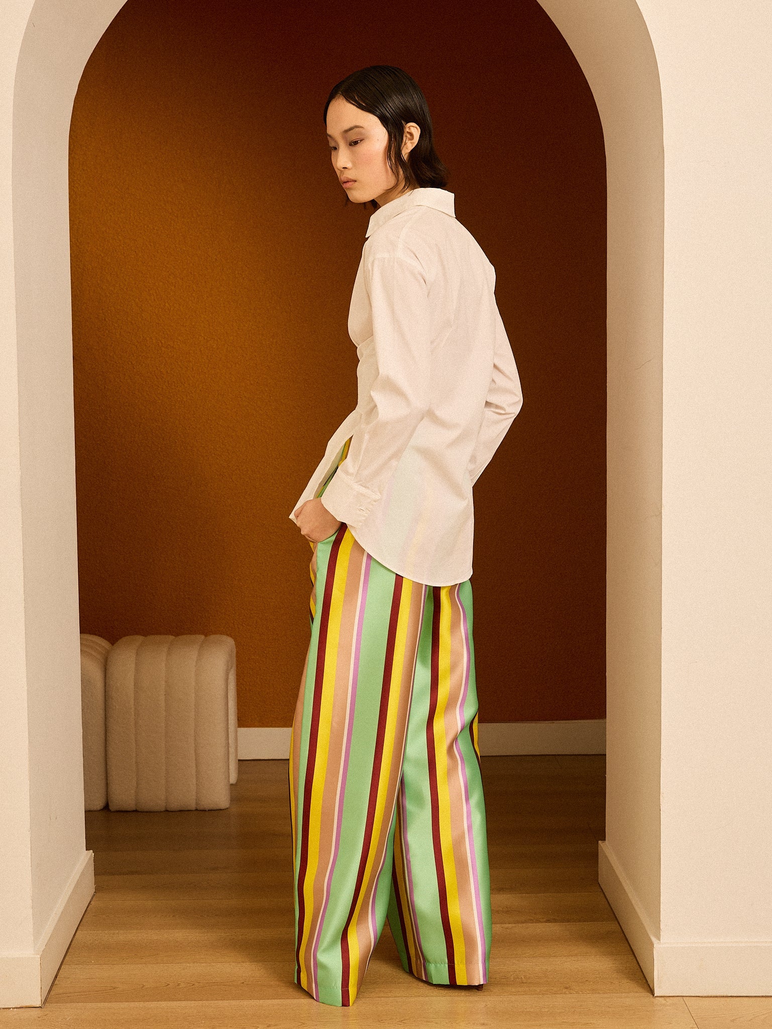 Camisa de popelín de algodón blanca con lazada trasera o delantera. Hecha en España