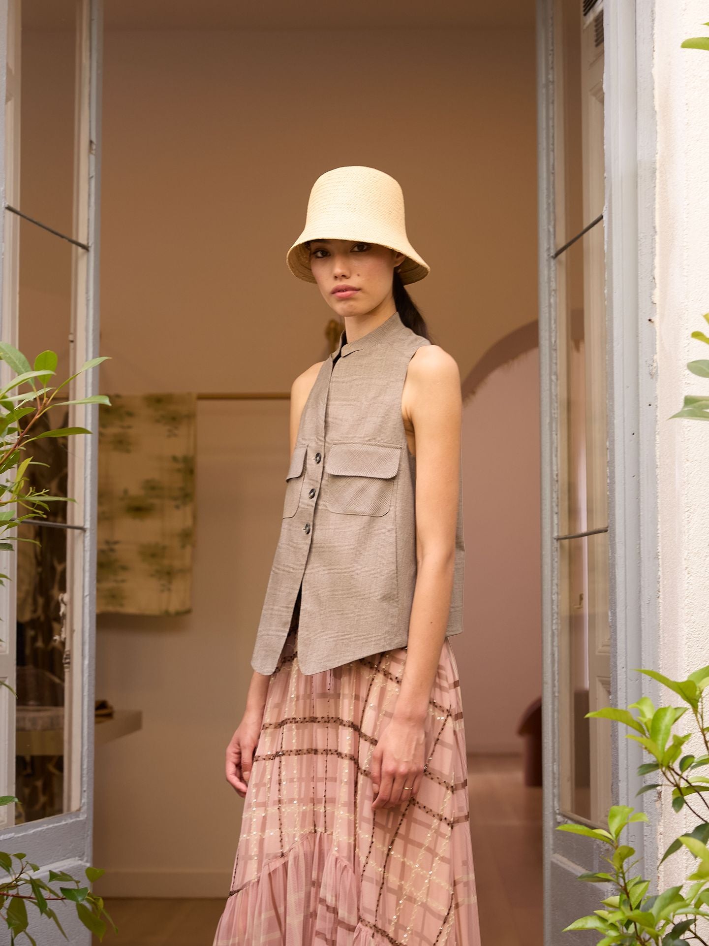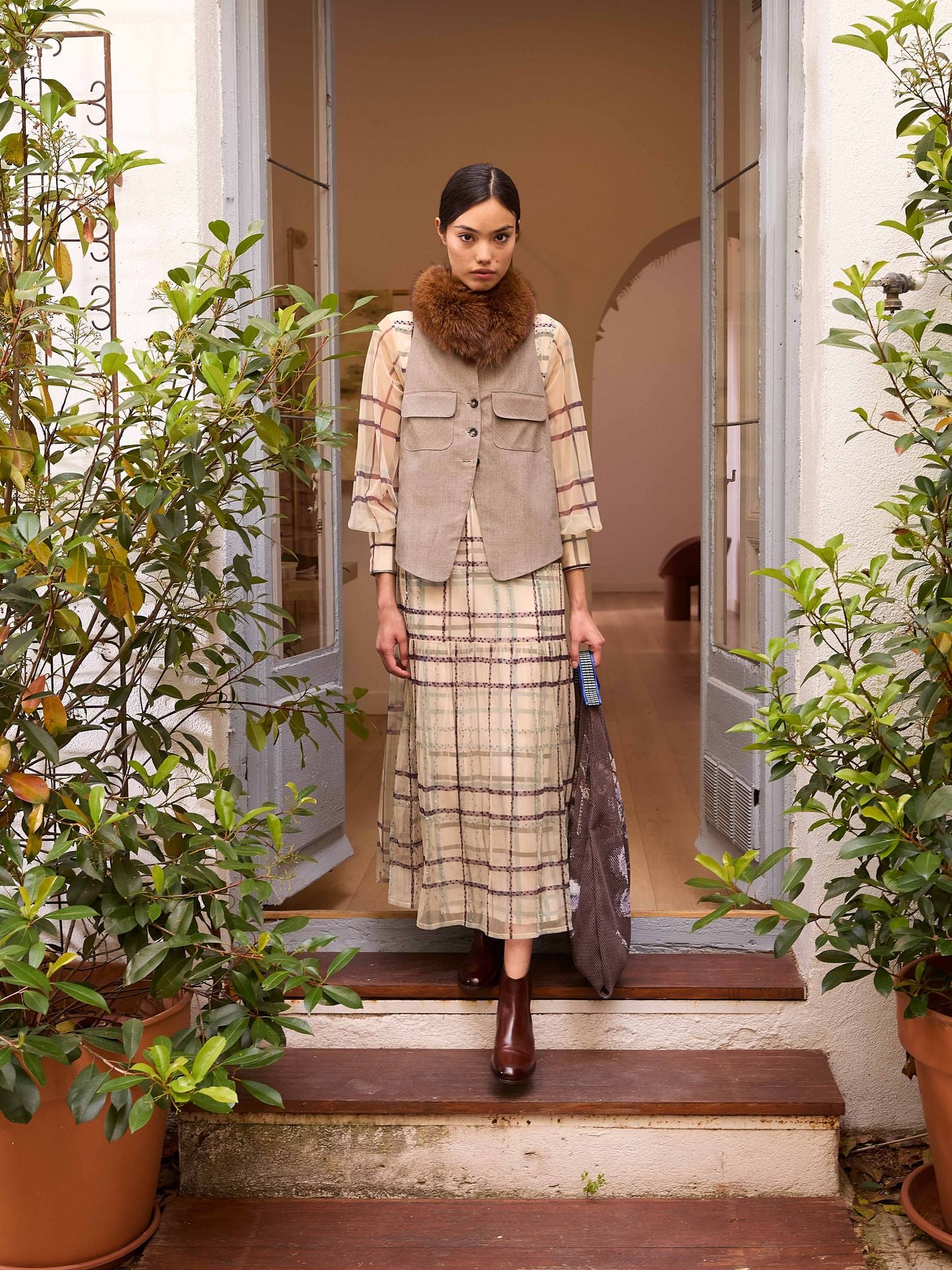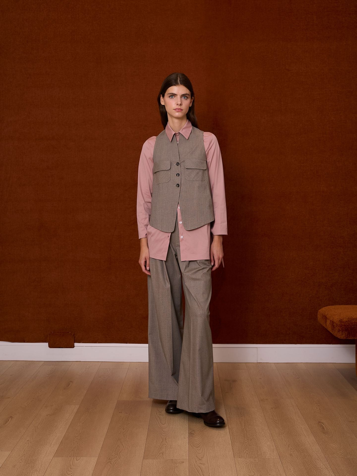 Chaleco estampado de cuadros príncipe de gales. Cierre mediante tres botones. Bolsillos de plastrón con solapa. Hecho en España