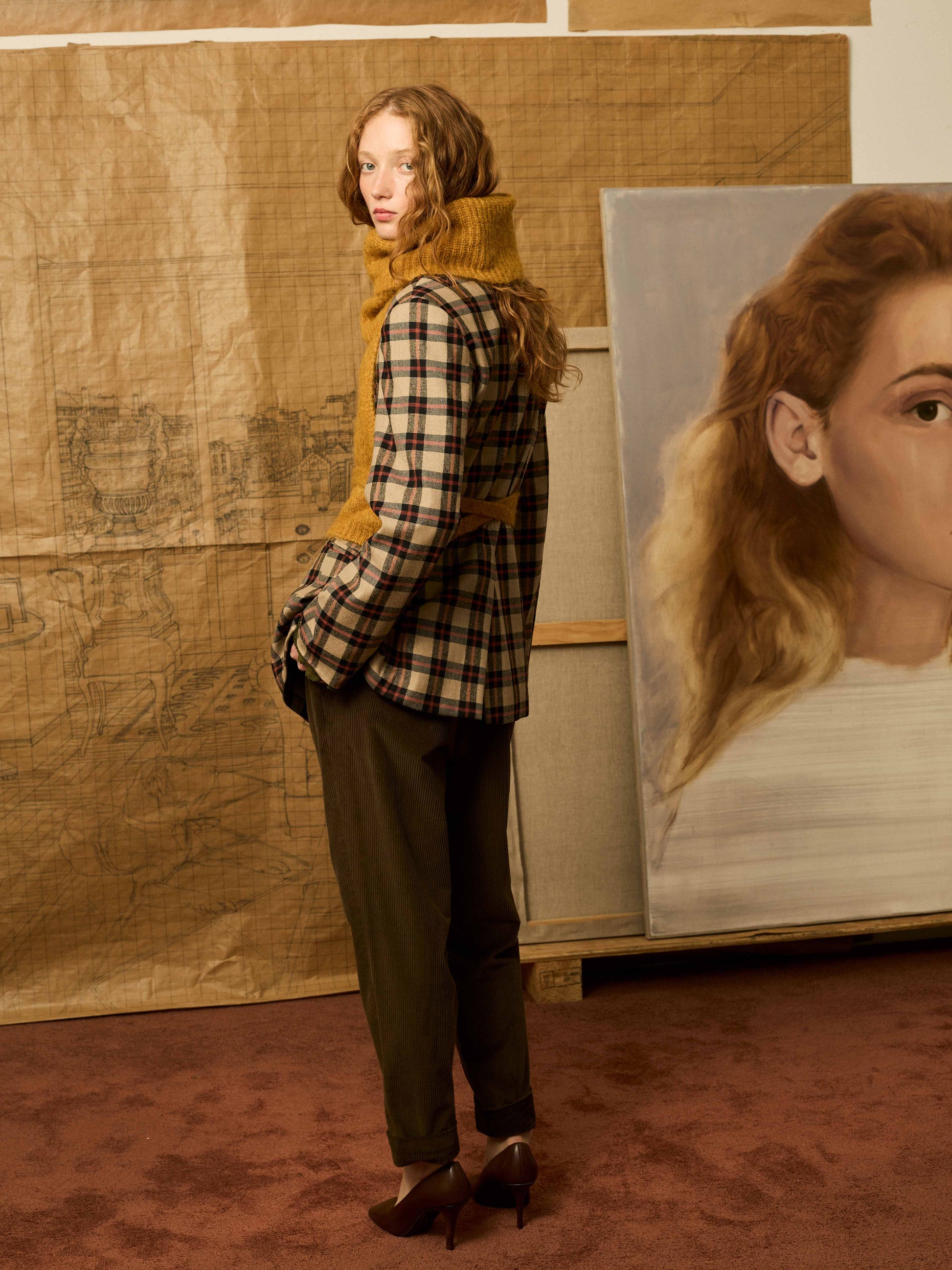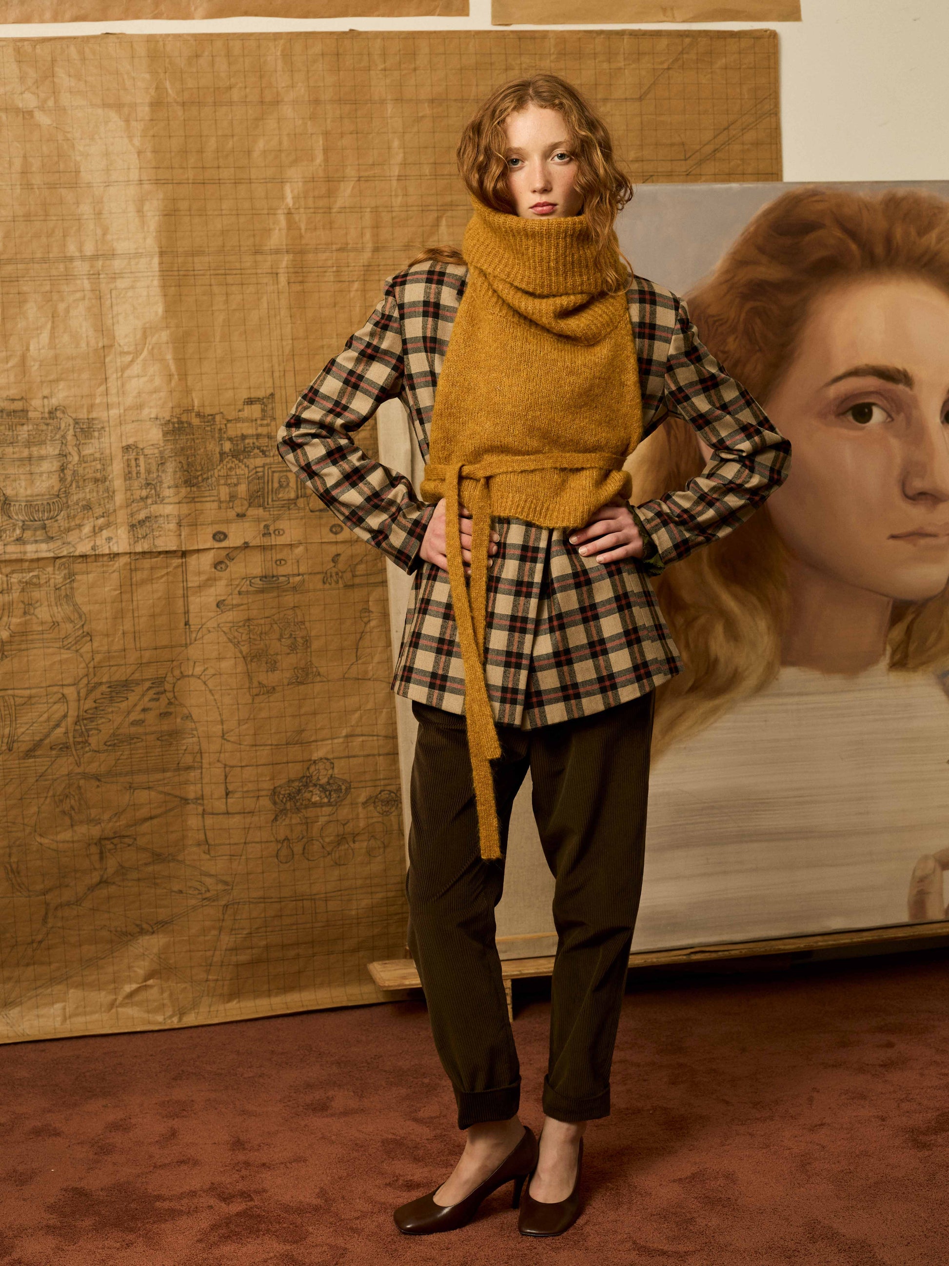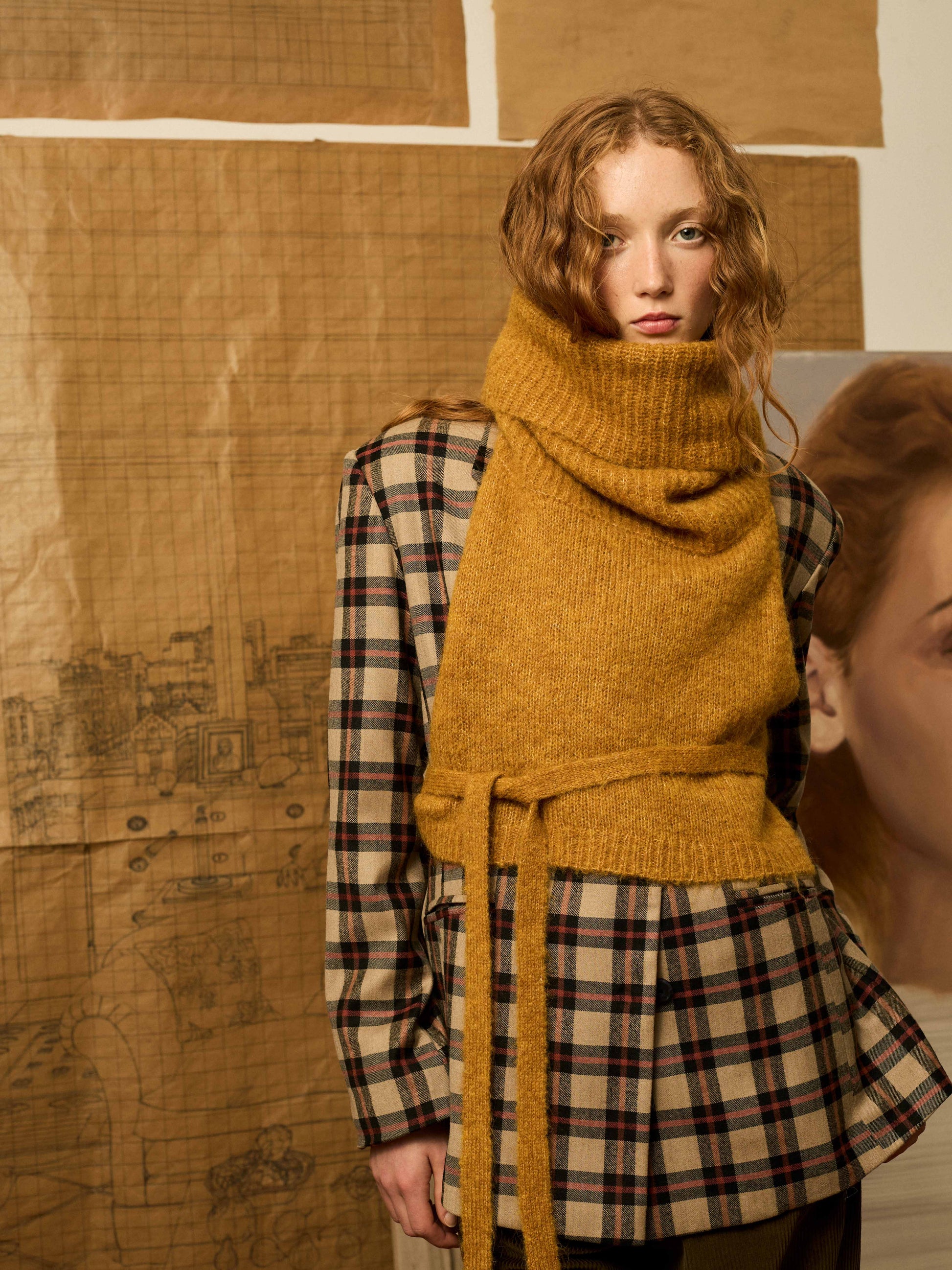 Cuerpo delantero de lana de cuello alto y cintas para abrochar en cintura