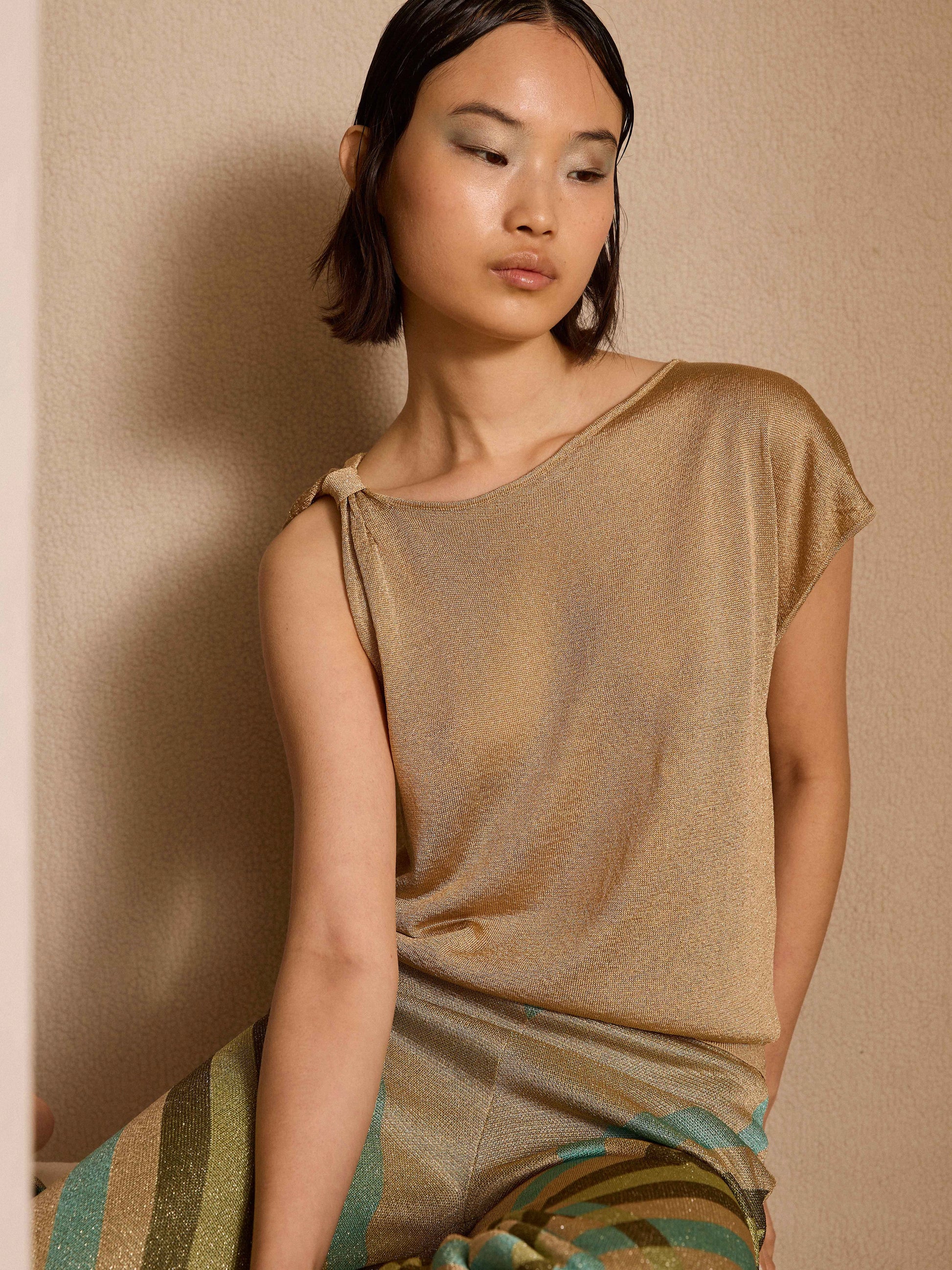 Jersey dorado de lurex asimétrico