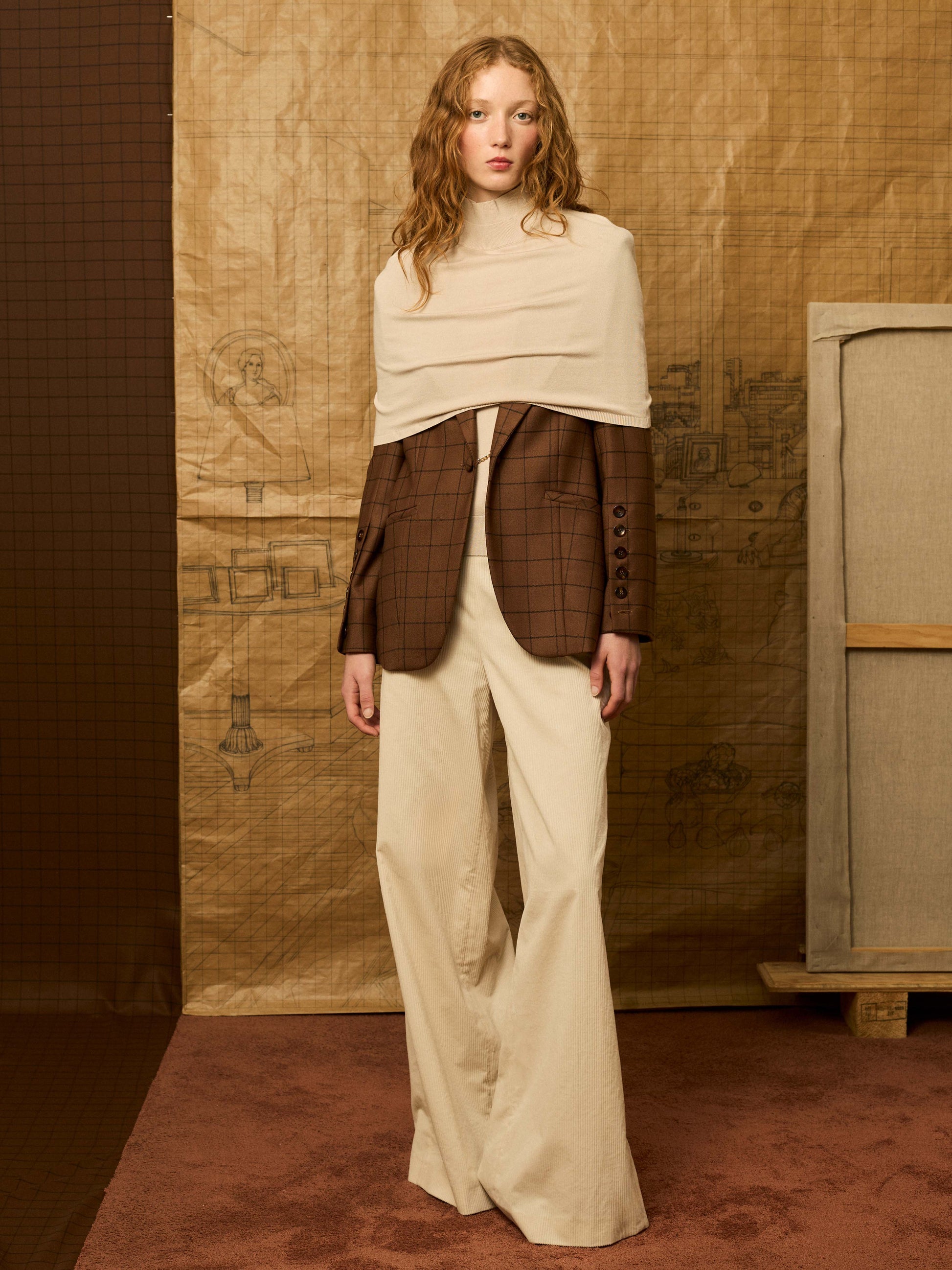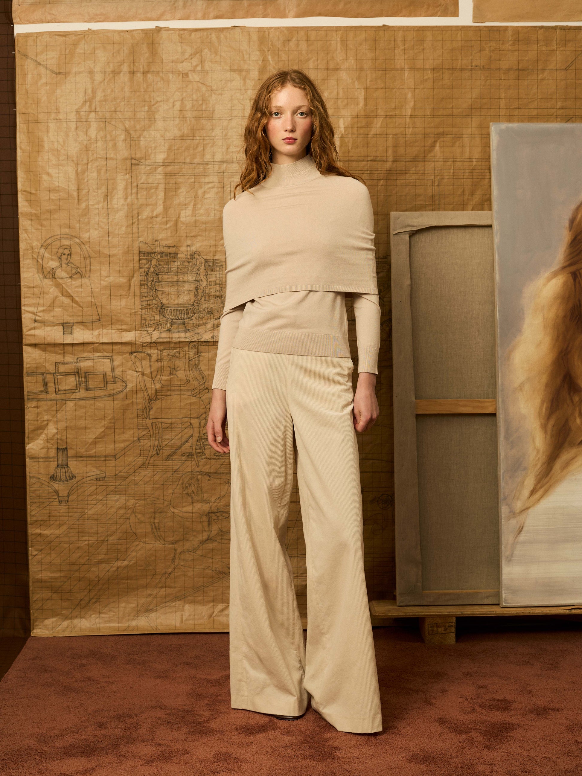 Jersey de cuello alto con capita para cubrir los hombros en color marfil