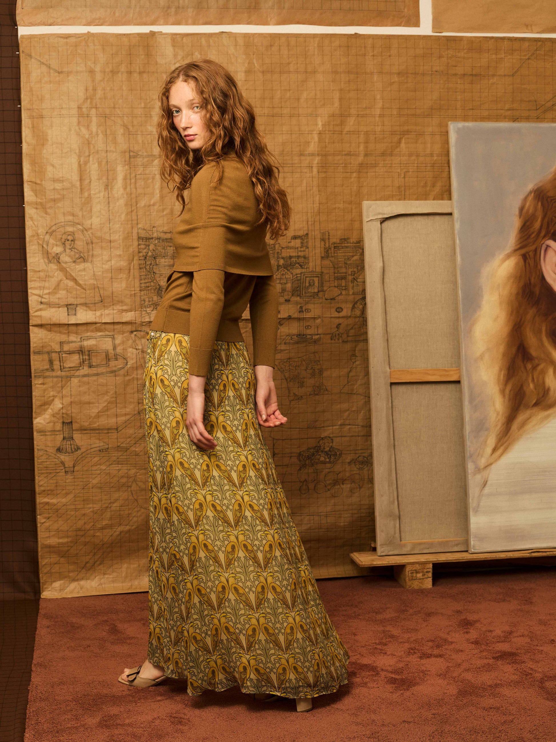 Jersey de cuello alto con capita para cubrir los hombros o llevar de diferentes formas en color oliva