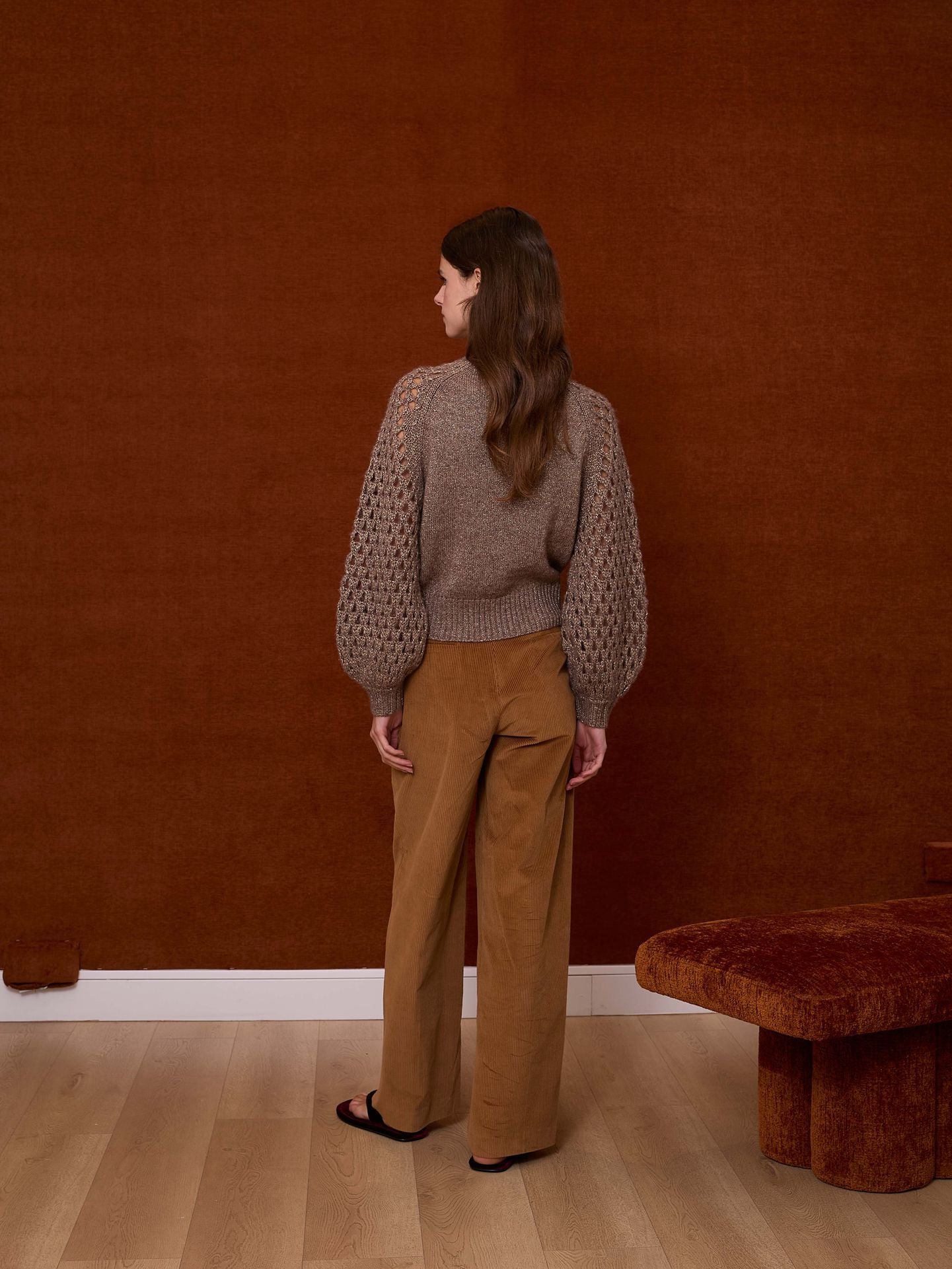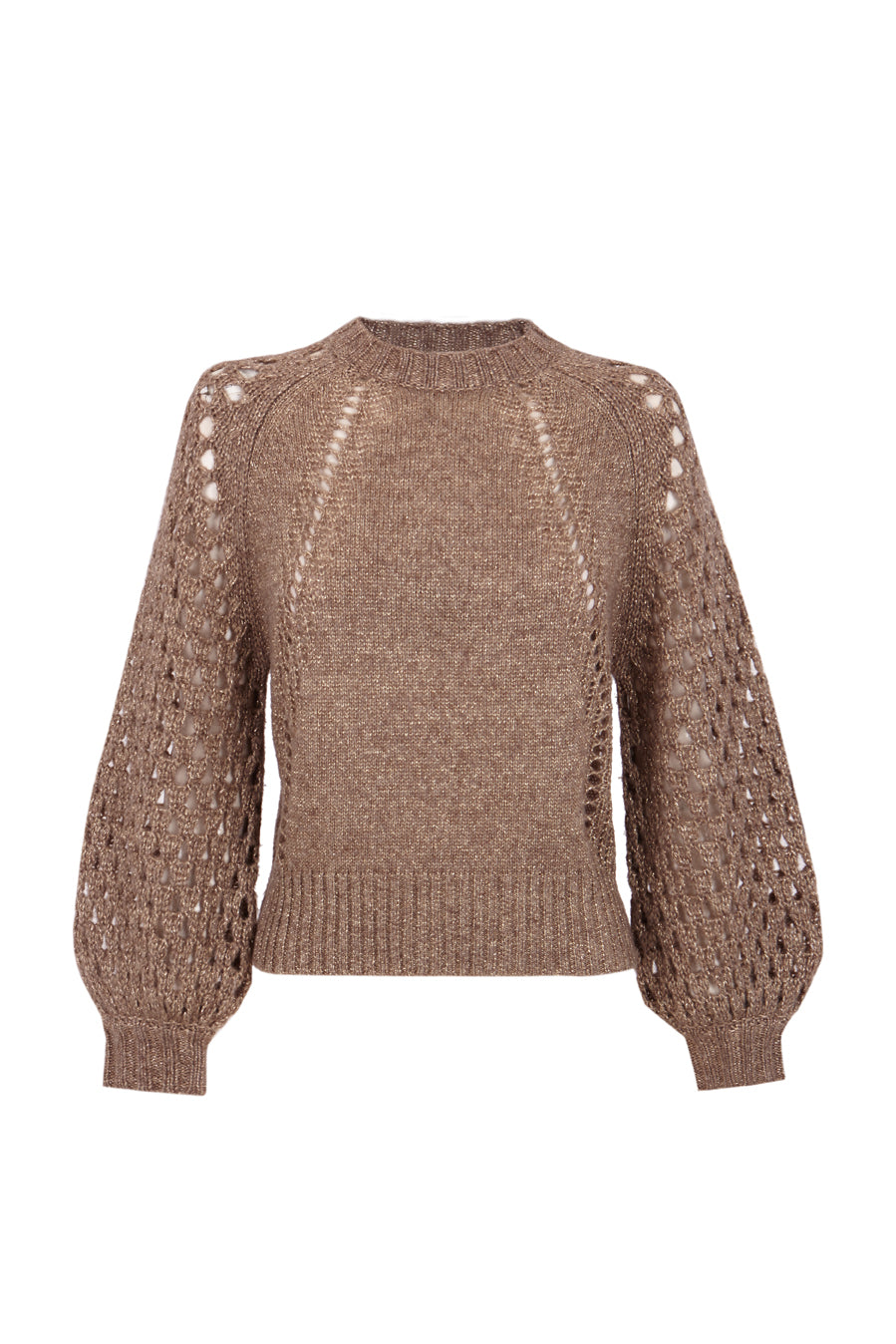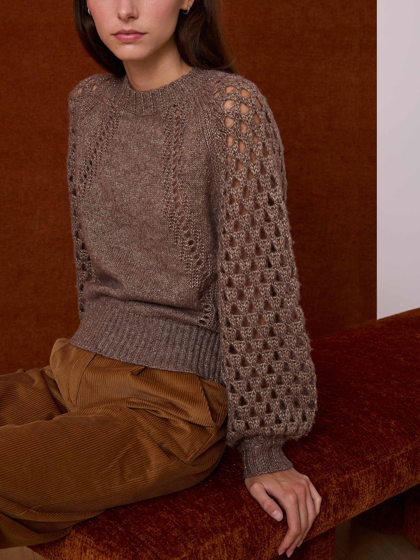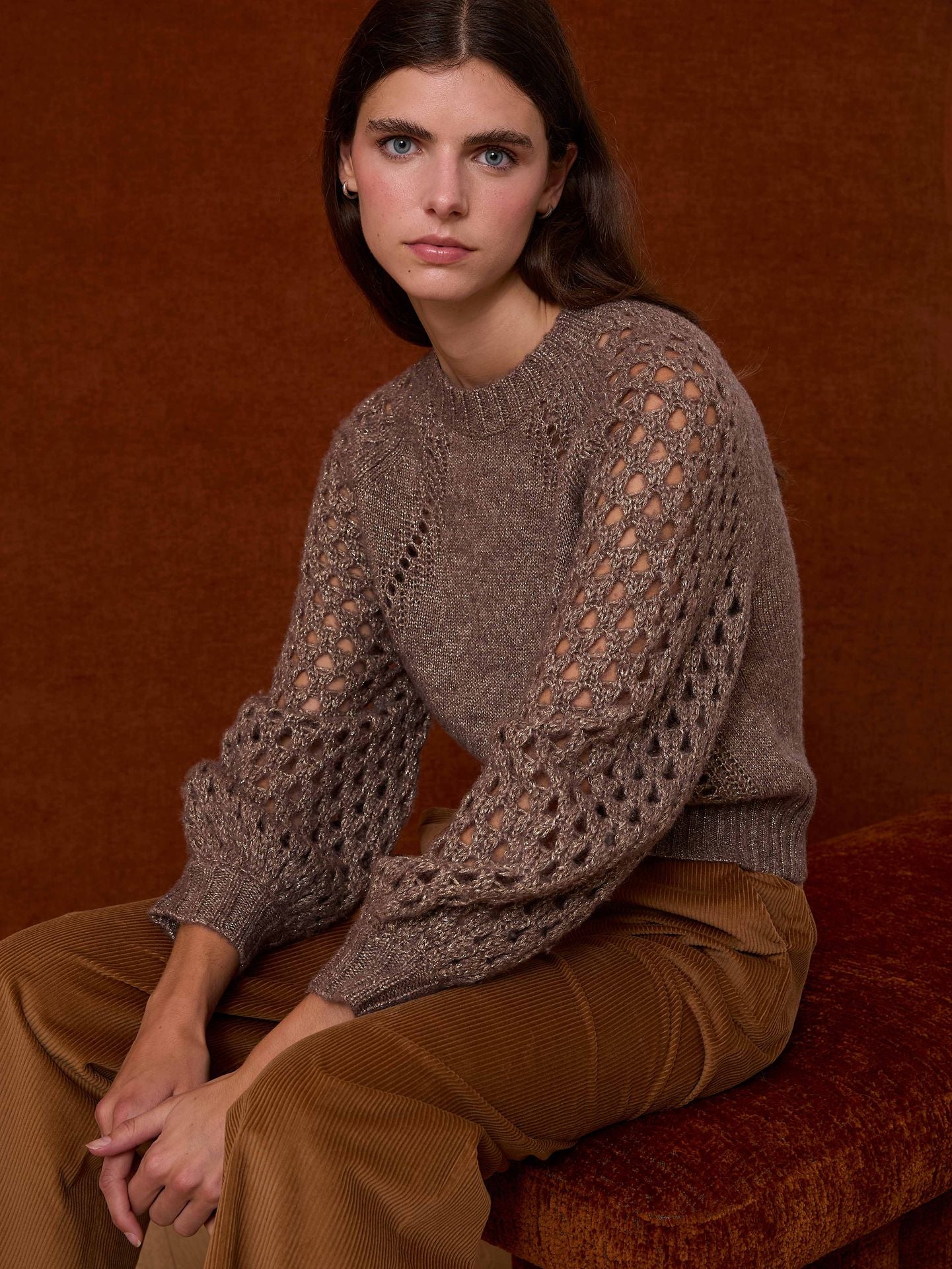 Jersey de cuello caja con mangas abullonadas caladas y ligeramente ablusonado
