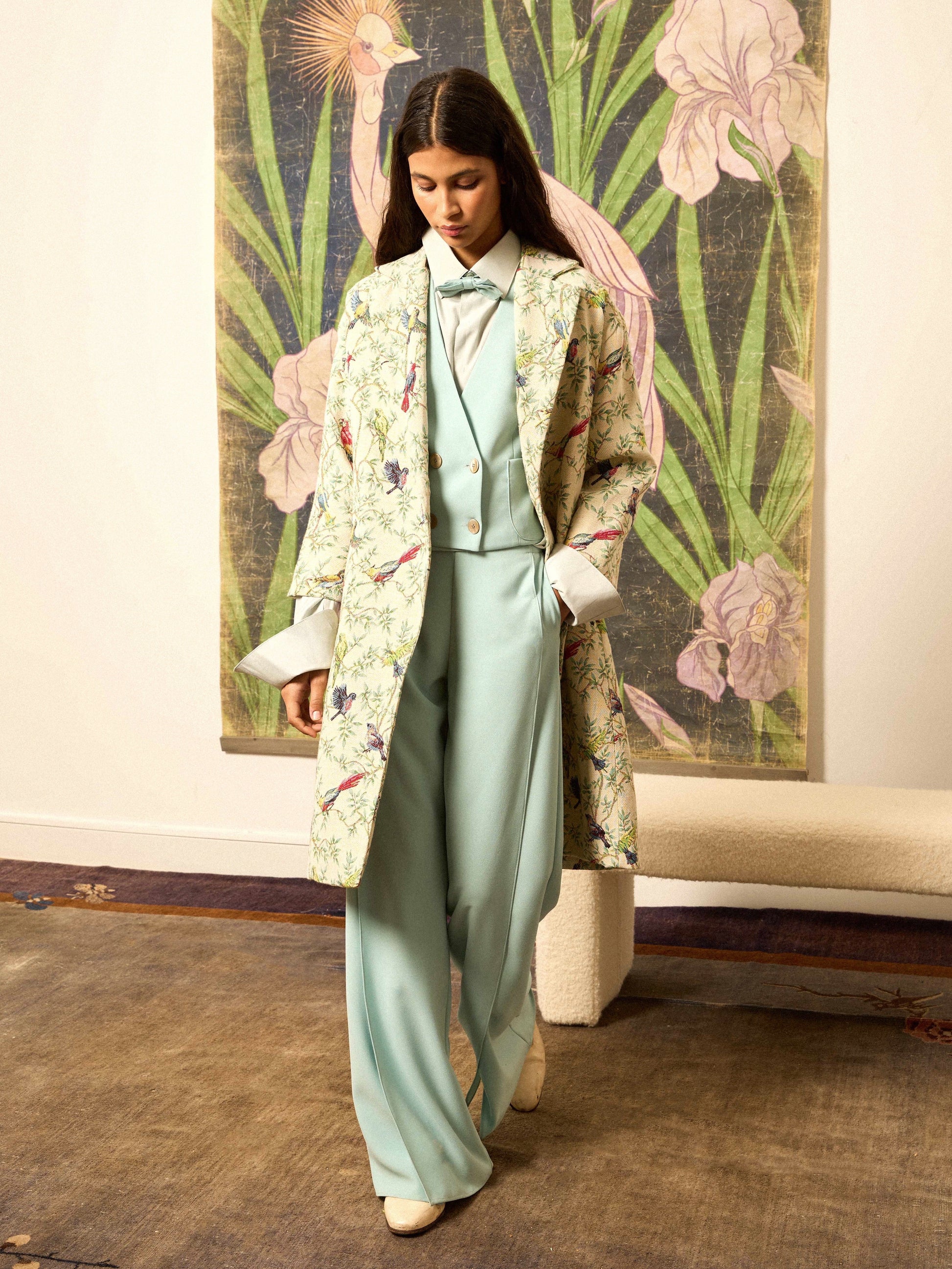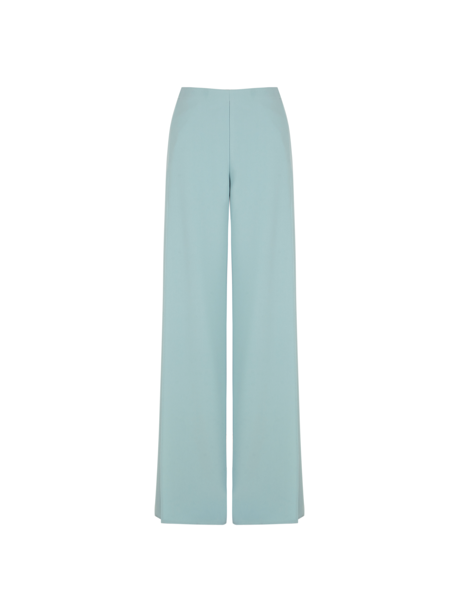 Pantalón de sastrería en crep de color celeste con abertura lateral. Hecho en España