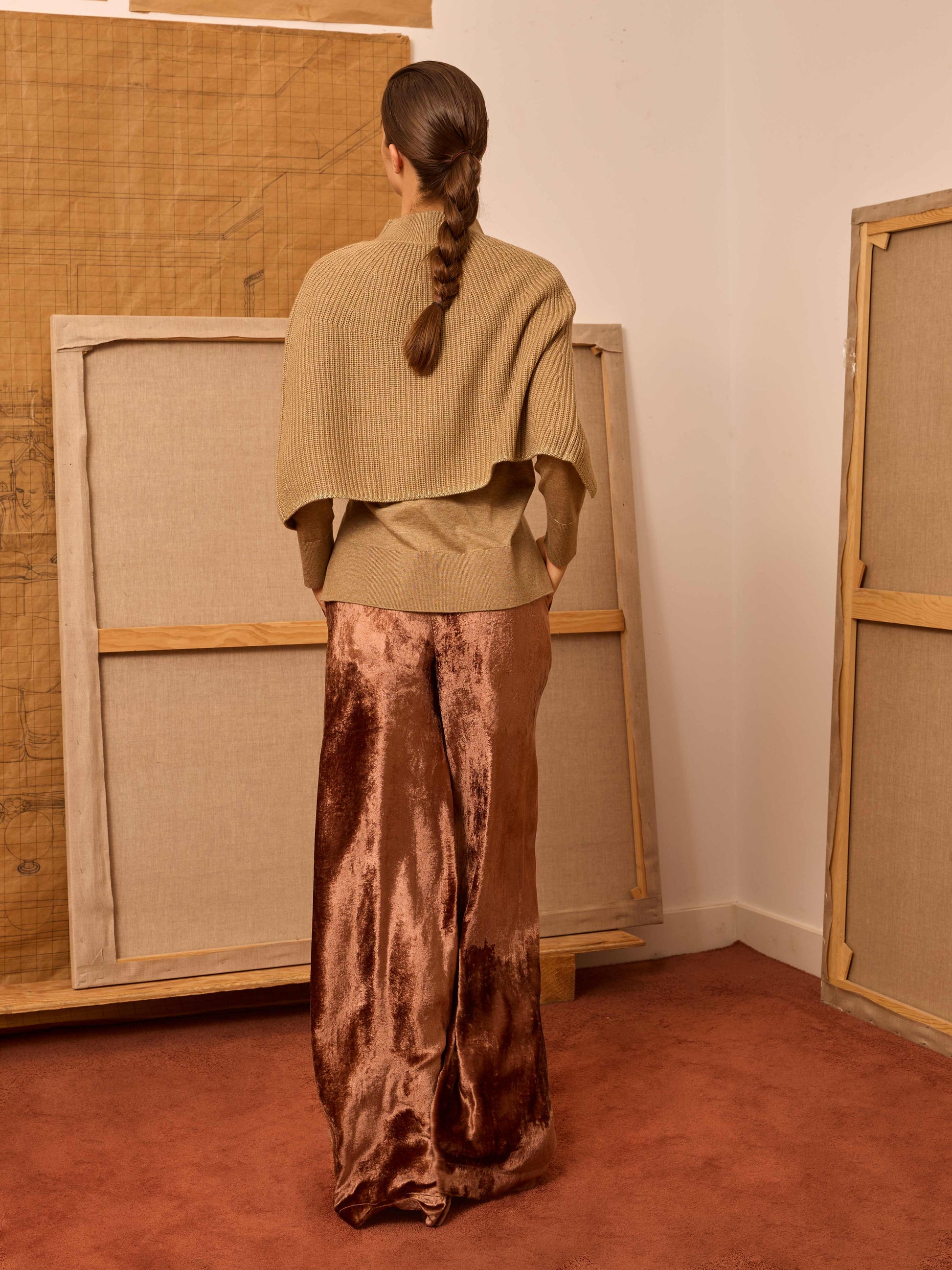 Poncho de canalé cortito en color topo